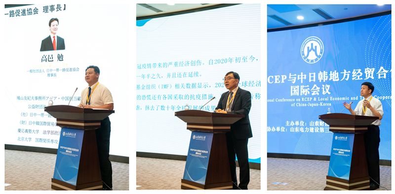 7月22-24日,RCEP与中日韩地方经贸合作国际会议在青岛举行。日中一带一路促进协会理事长高邑勉、大韩贸易投资振兴公社大中华地区总代表洪彰杓、中国社会科学院世界经济与政治研究所副所长邹治波、山东电建三公司总经理王礼出席会议并致辞,韩国对外经济政策研究院北京首席代表李尚勋、韩国交易所北京首席代表姜永升、北京语言大学国别和区域研究院院长罗林、中华日本学会会长高洪、中国日本经济学会常务副会长张季风、山东省人民政府研究室副主任赵昌军、省贸促会秘书长陈彤等领导和专家出席会议。会议由我校校长、中日韩研究院院长赵忠秀主持。