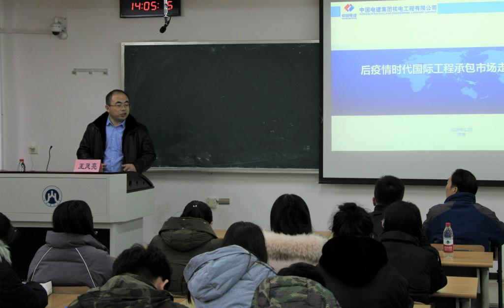 2020年初,突如其来的新冠疫情席卷全球,严重冲击了本就面临巨大下行压力的世界经济形势,国际工程承包市场深受影响。王经理基于中国电建集团核电工程有限公司海外业务实际,依据自己多年来积累的海外工程项目经验,结合疫情前后国际工程承包市场的形势和特点,与同学们分享了我国的电建企业海外业务在疫情期间面临的种种困境和应对策略,让同学们明白我国电建企业参与国际市场竞争拥有的优势和面临的挑战。。