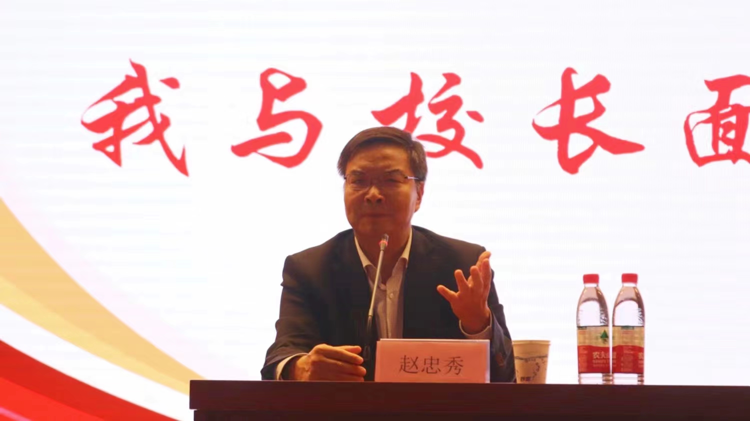 “我与校长面对面”2022级新生交流主题活动在圣井校区举行。校长赵忠秀与宝宝计划