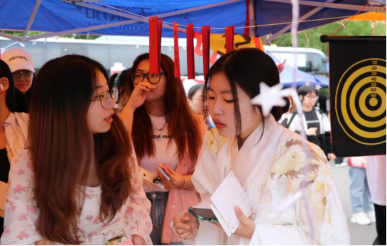 摊位吆喝声漫天,看台前人声鼎沸。同学们体力与脑力并发,在体验中感受到了我国悠久博大的传统文化,在游戏中学习有趣的历史知识,更在活动中坚定了文化自信: