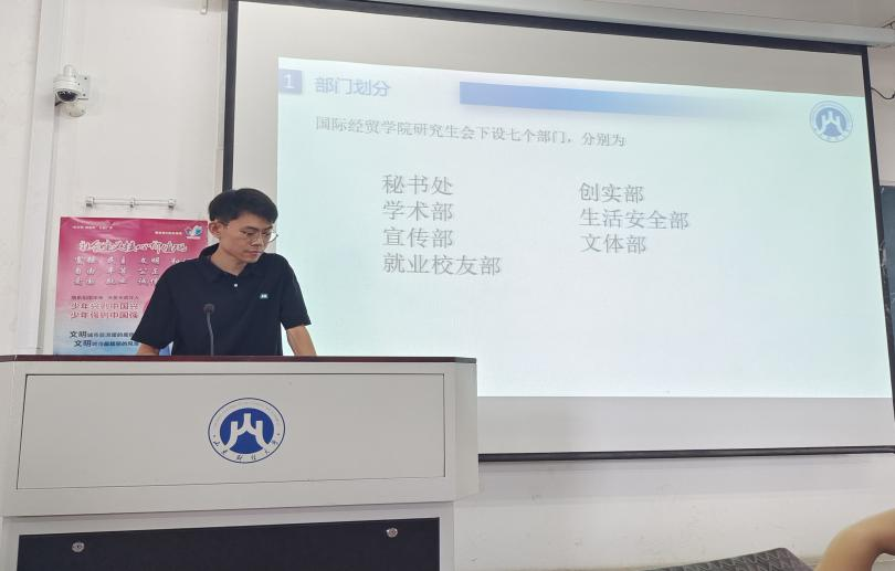 随后,李象亮和金颖两位同学代表研究生会为新生们详细介绍了各部门组成和职能,尤其针对新生关心的各类奖学金设立、评选程序做了详细解释,并鼓励学弟学妹们在读研期间于大处着笔,绘就大写人生。