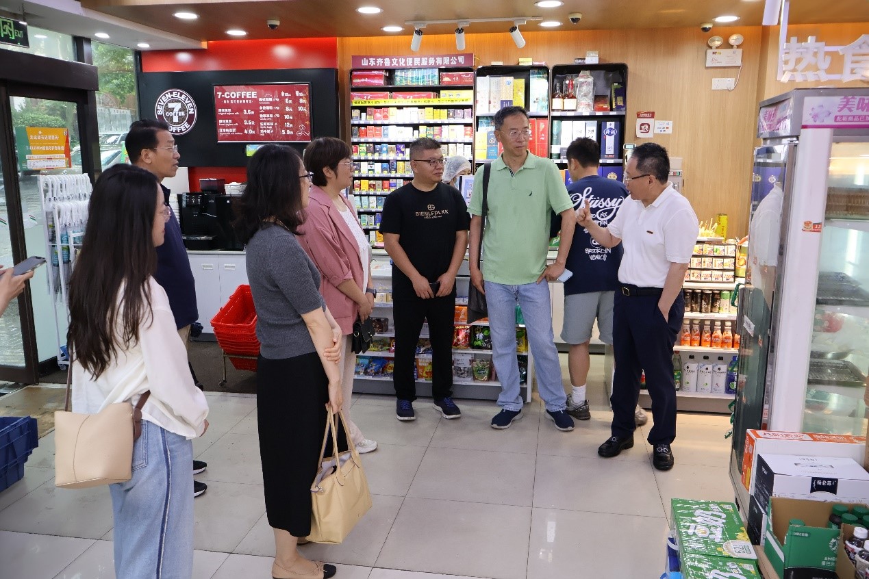 一行走访了众地阳光集团。众地阳光集团董事长、学校校友会副会长、青岛校友会会长、84级校友王文正对母校领导老师的到来表示热烈欢迎,深情回忆了难忘的大学时光,表达了对山东财经大学、对老师们的由衷感谢。王文正董事长对集团的历史沿革及主要业务板块的发展状况做了简要介绍,在近30年的发展历程中,众地阳光集团始终坚持全球化发展布局,与国外目标市场头部品牌商建立了长期稳定的战略合作关系,在山东省内开展的7-ELEVEN便利店事业,将全球领先的零售商业模式实现了本土化高效运营。
