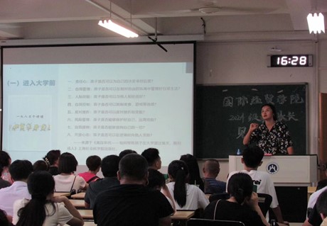 紧接着,郝秀峰书记向家长们介绍了新生辅导员以及学院学生具体工作情况,帮助家长了解学院的文化活动、考研就业以及学生组织架构和功能等信息,鼓励学生主动积极地与教师、班主任、辅导员交流,培养自主解决疑难问题的能力。
