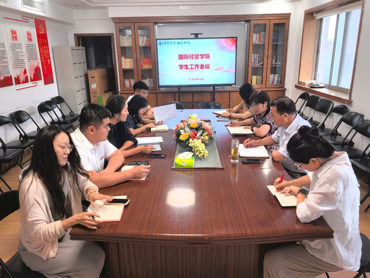 在舜耕校区召开学生安全教育专题工作会议,对新学期学生工作进行部署。学院党委书记崔东峰,副书记郝秀峰、王斐斐和全体辅导员参会。