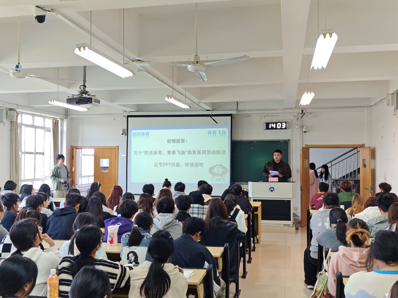 启动“阳光体育,青春飞扬”系列体育活动。10月24日,“国贸之蕴 健康自律”主题讲座于山东财经大学圣井校区活动教室举行,学院辅导员张伟峰担任主讲人,辅导员李亚莉、牟重阳及全体大一新生参加报告。本次报告是学校“成长·成才大讲堂”系列报告活动之一。