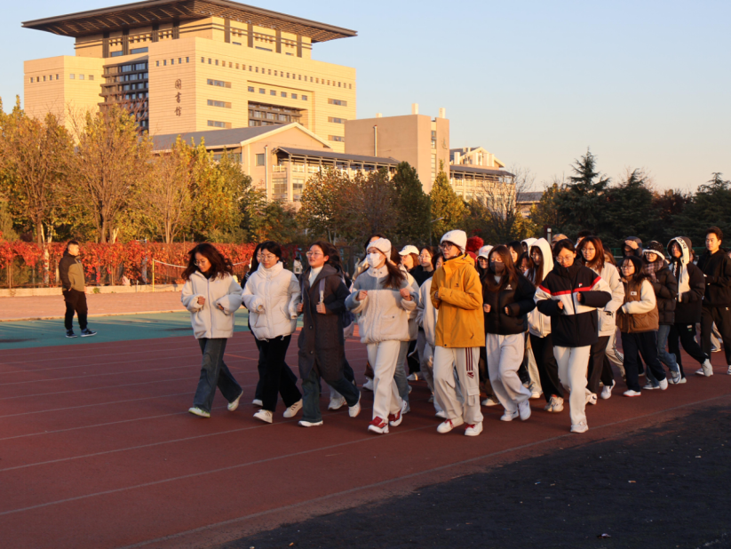 学院在组织学生晨跑期间,播放动感音乐,将音乐与运动相结合,将美育与体育相融合,充满韵律的音乐节奏与同学们奔跑的跑步声相互交织环绕,演奏出动听的青春旋律,成为晨曦中靓丽的风景线。