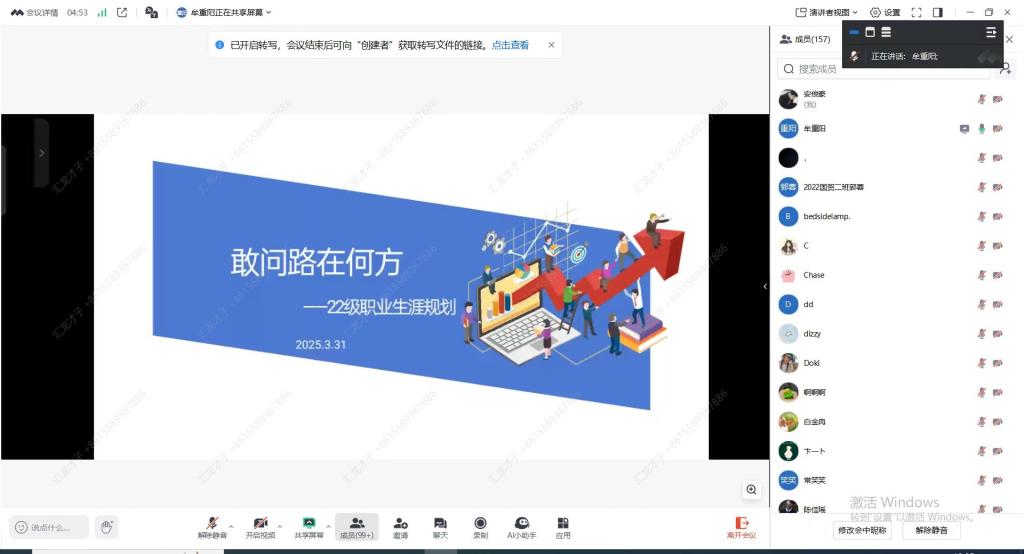 开展职业生涯规划讲座第6期。讲座采用线上会议的方式,由辅导员牟重阳主讲,2022级全部本科生参加。
