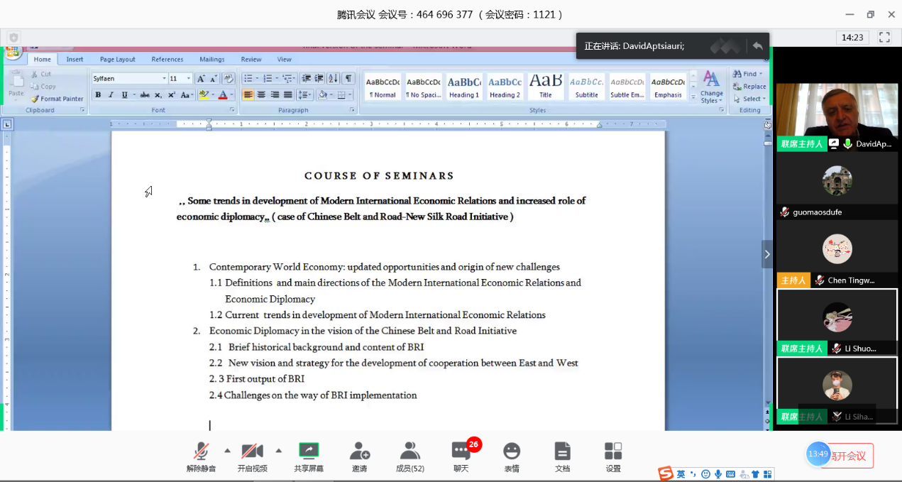 为让同学们更好的理解相关理论与专业知识,阿普恰乌利教授还充分结合当前的全球新冠肺炎疫情背景,以中国积极开展大量对外医疗援助及我国“一带一路”倡议为例,论述了深入开展国际合作对促进全球经济关系发展的重要作用,面对多元化的全球经济合作,他与同学们分享了自己的最新研究成果与建议。