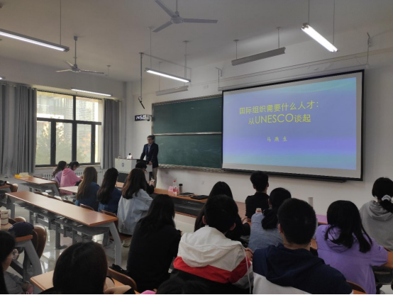 2021年4月8日下午,原中国驻法国使馆教育处公使衔参赞马燕生先生到访我校圣井校区,为我校学生作题为“国际组织需要什么人才:从UNESCO谈起”的专题讲座。国际交流与合作处、宝宝计划