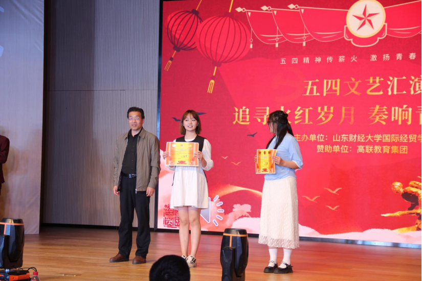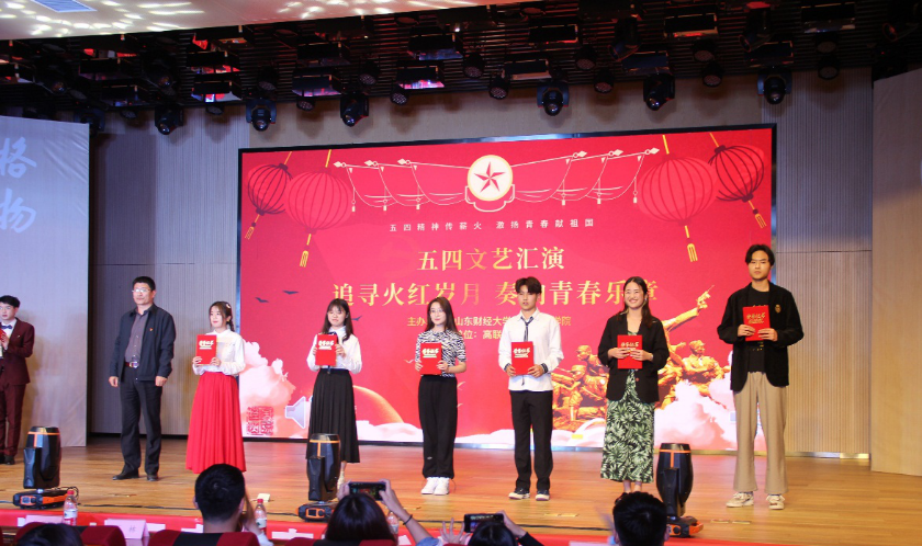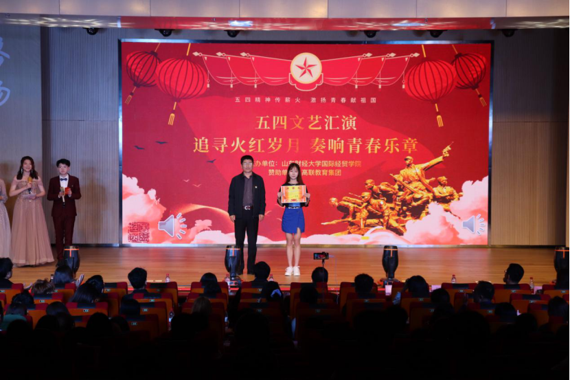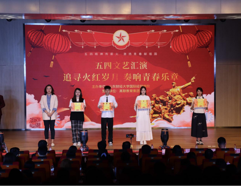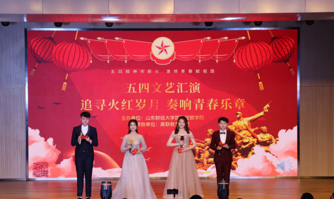 在山东财经大学圣井校区文体活动中心举办“追寻火红岁月,奏响青春乐章”五四文艺汇演暨表彰大会。宝宝计划
