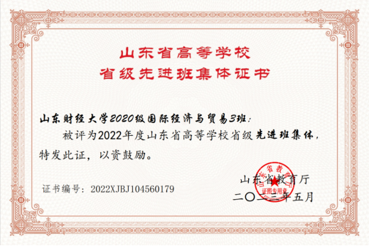 推荐的2020级国际经济与贸易3班经过层层评选,最终荣获省级“先进班集体”荣誉称号。