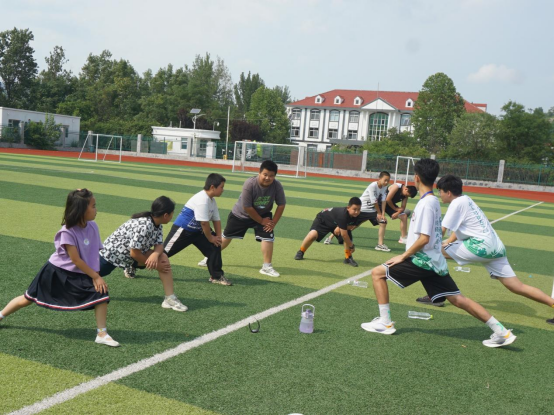 图为支教组成员带小朋友们进行热身运动