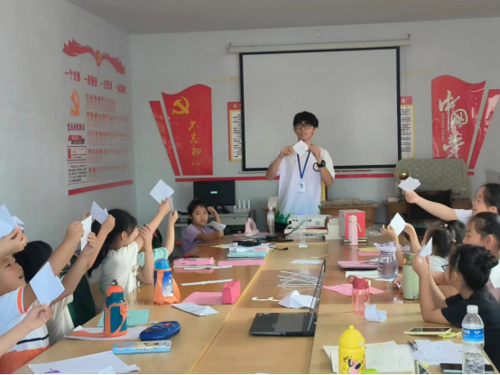 为丰富小朋友们的暑假生活,开拓小朋友们的眼界,支教组开设了传统文化、中国历史、舞蹈、心理、手工、数独、绘画、音乐等多元有趣的拓展课程。支教组的成员们用生动活泼、简单易懂的语言为小朋友们讲解知识,在支教组成员们耐心温柔地引导下,小朋友们对学习新知识燃起了好奇心,渐渐投入到课堂中,收获颇丰。除了特色课程外,支教组还开设了暑假作业辅导课程,帮助小朋友们解决作业难题。