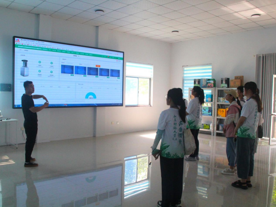 图为源北村书记向调研组成员介绍智慧农业平台