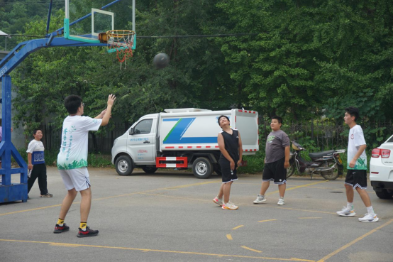 图为支教组成员与小朋友们一起打篮球