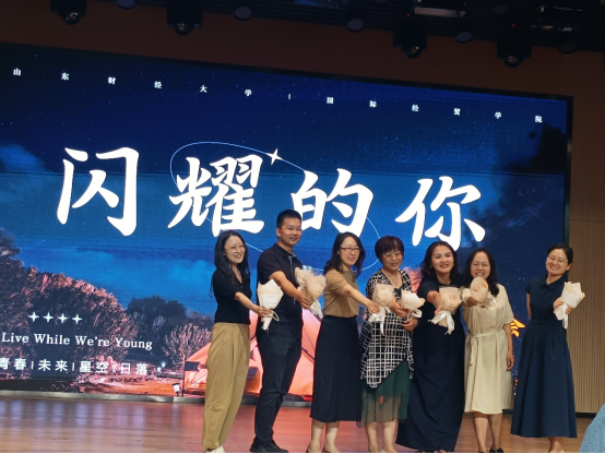 另外,同学们还为一直辛苦付出、默默耕耘的辅导员老师们颁出了大奖:“国贸之星奖”房甄老师、“辛勤园丁奖”李瑞雪老师、“勇往直前奖”李亚莉老师、“乘风破浪奖”王思远老师、“顶天立地奖”蒋静老师和“国贸男神奖”薛冰岩老师。