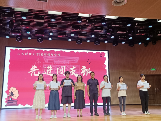 回顾结束后,崔东峰书记为跨境电商一班等团支部颁发“卓越团支部”奖项。王斐斐书记、房甄老师为2021级国际商务二班等多个团支部颁发了宝宝计划