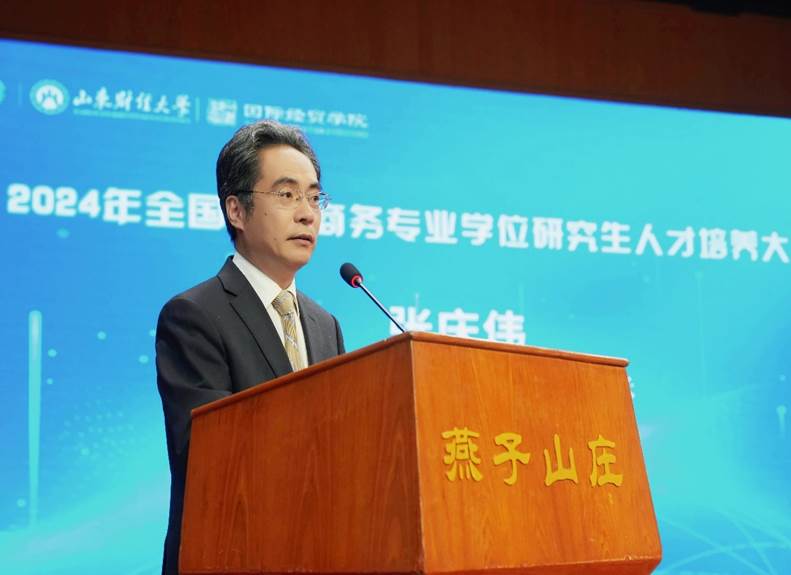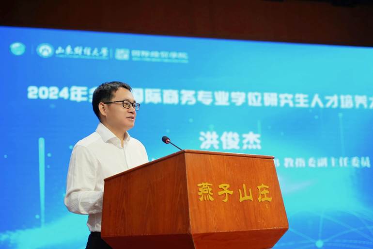 洪俊杰在致辞中对来自全国各培养单位的嘉宾表示欢迎,并简要介绍了我校发展的基本情况。他指出,未来将围绕我校第二次党代会提出的“1139发展思路”,以服务国家和地方战略需求为导向,打造富有山财大特色的国际商务人才培养品牌,为发展新质生产力、推动高质量发展提供强大的人才支撑。他呼吁各位专家学者聚焦当前国际商务专业硕士培养中的突出问题,提出新观点、新举措、新思路,为我国国际商务人才培养出谋划策。