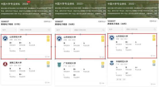 跨境电子商务专业和国际经济发展与合作专业在全国专业排名中位列第一,专业评级均为A+,其中跨境电子商务专业是连续第三年在软科全国大学专业排名中第一,标志着彩票计划软件