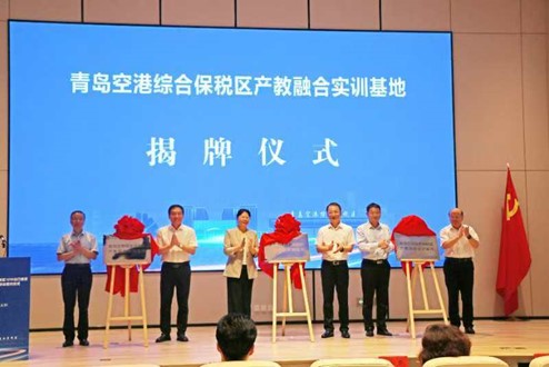 8月30日,方慧院长受邀出席青岛空港综合保税区“1210”出口首票启动暨区域联动签约仪式,并为青岛空港综合保税区产教融合实训基地揭牌。