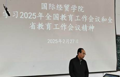 党委书记刘波带领大家集体学习了2025年全国教育工作会议和全省教育工作会议精神,深入解读了会议的核心要点和重点任务。他指出,全国教育工作会议和全省教育工作会议为我们指明了教育事业发展的方向,提出了新的要求和任务。全体教职工要深刻领会会议精神,将其转化为推动学院发展的动力,并结合学校2025年度工作动员部署会要求,切实把学校的要求落实到学院的每一项工作中去,为学院发展贡献力量。随后,他通报了学院新一届领导班子的分工情况,并强调全体领导班子要以饱满的工作热情和扎实的工作作风,为师生做好服务,加强沟通交流,积极投身到学院的各项工作中去,共同形成合力促进学院高质量发展。
