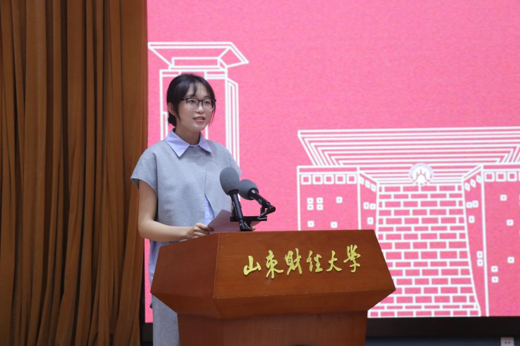新生代表、2025级国际商务专业硕士研究生贾玉梅,表示作为新财大国贸人,在未来的学习生活和工作中,将会铭记“克明峻德,格物致知”的精神,秉承经世之志,勤修济民之学,勤奋钻研专业,努力提升素养,密切关注国家和世界经济形势,努力做新时代开放经济浪潮中的奋进者与弄潮儿。