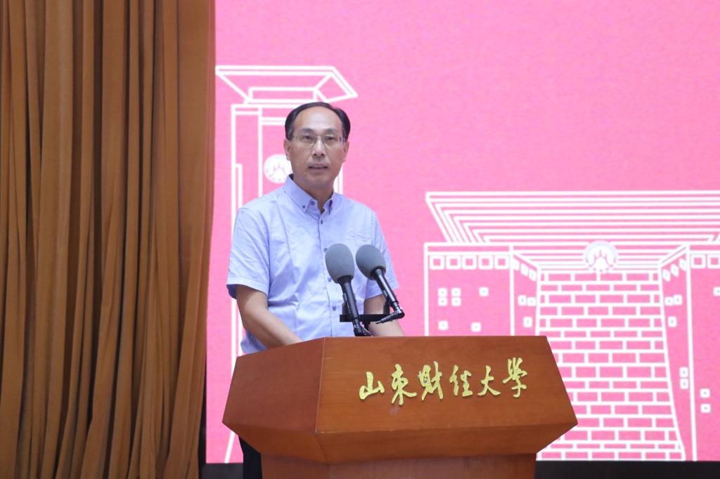 在章丘校区图书馆学术报告厅举行2025级新生开学典礼。学院党委书记刘波,院长方慧,党委副书记郝秀峰、王坤,副院长王舒鸿、王磊,国际经济系主任李真,2006级校友代表钱进,全体辅导员及2025级全体新生出席典礼。典礼由王坤主持。