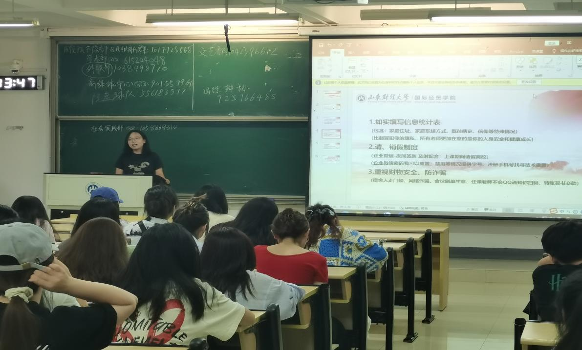李瑞雪通报了学院研究生新生的报到总体情况,对全体新生的到来表示热烈欢迎。她简要介绍分管研究生教育管理的老师职责分工,提醒同学们遇到问题及时与相关负责老师取得联系。随后,就近期重点工作进行了细致部署。重点说明了新生信息统计表的填写规范,同时着重强调了请销假制度流程、个人财物安全、人身安全、消防安全、防范电信网络诈骗等相关事项,提醒同学们务必提高安全防范意识,构筑坚实的安全防线。她强调了近期几项重要工作的时间节点,涵盖新生信息采集、学籍注册、学业规划调研、入学信息核对等资料准备工作,以及新生素质拓展、研究生会与班干部竞选等系列活动,并明确了荣校教育、心理健康、校规校纪等系列入学教育的具体工作部署,引导新生合理规划时间,顺利融入研究生生活。