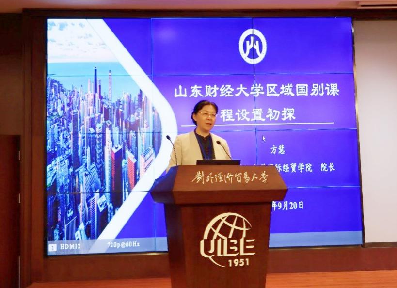 院长方慧教授应邀参会并作典型案例报告,介绍了山东财经大学的学科优势与区位特色,总结了我校在区域国别学课程设置方面的初步探索与经验总结,强调经济学基础和跨学科交叉融合的重要性,并分享了通过搭建教研平台、开设暑期学校、双学位项目和国际组织实习等途径培养人才的实践探索。