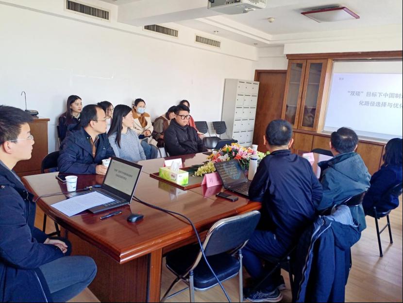房甄老师、贺凯博士就“‘双碳’目标下中国制造业数字化路径选择与优化”与“企业家精神与出口产品质量提升”两篇论文分别进行了分享。学术系主任刘磊副教授,以及经济研究中心康传坤教授、国际贸易教研室主任陶攀副教授分别对主讲人的论文进行了精彩的点评。