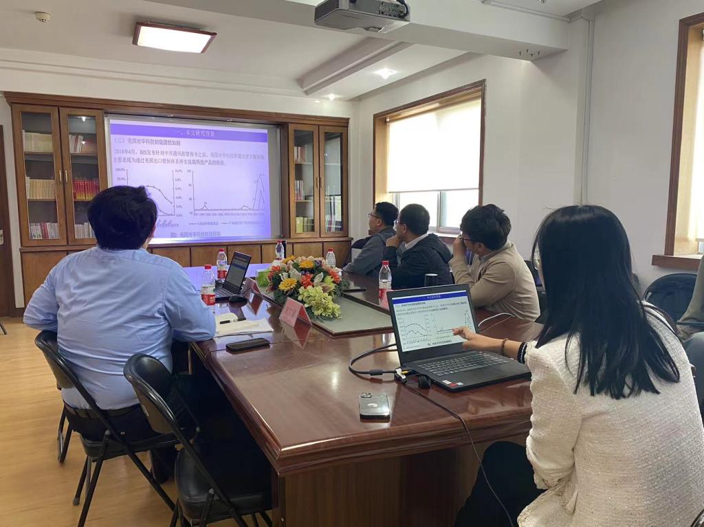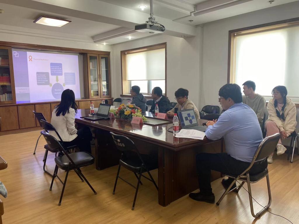 主讲人朱宝颖博士,主要研究方向是决策理论与方法、可持续发展,在《Information Sciences》《Sustainable Cities and Society》《Ocean & Coastal Management》《运筹与管理》等期刊发表多篇学术论文。他就题为“What Configurations for Doing Business Environment Contribute to Firms’ Digital Transformation? Evidence from China”的论文进行了分享。另一位主讲人李秋静博士,主要研究方向为中美经贸关系、人工智能与国际贸易,在《管理世界》《财经研究》《经济学家》等期刊发表多篇学术论文。她就题为“美国对华科技制裁与中国制造业企业金融化”的论文进行了分享。