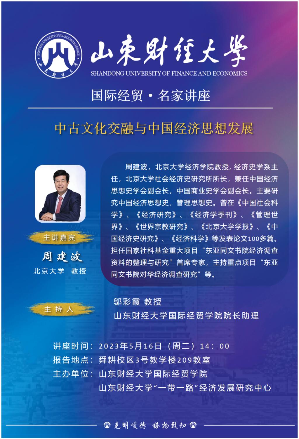 国际经贸·名家讲座:中古文化交融与中国经济思想发展