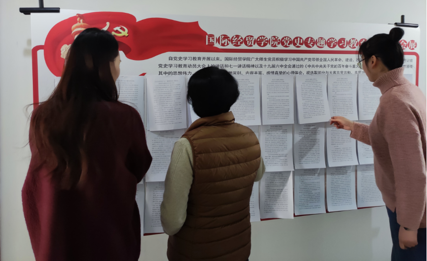 广大师生党员围绕中国共产党带领全国人民革命、建设、改革开放和进行社会主义现代化建设的光辉历史,围绕习总书记在党史学习教育动员大会上的讲话和七一讲话以及十九届六中全会通过的《中共中央关于党的百年奋斗重大成就和历史经验的决议》认真学习,深入思考,努力实践,结合自己的学习、工作实际,突出坚定理想信念、加强党性修养、担当作为等方面,形成了一篇篇高质量的心得体会。学院党委通过心得展的形式,促进了学习交流,营造了“比、学、赶、帮、超”良好学习氛围。