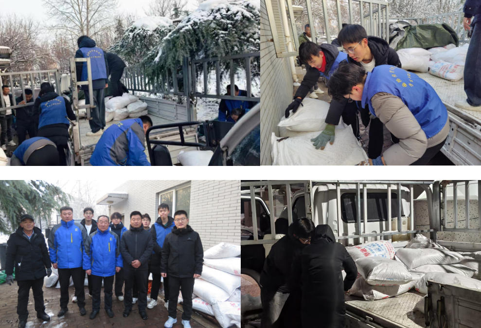 志愿者在各校区提前待命,分工协作,迅速完成搬运与堆放,为后续除雪工作筑牢物资基础。
