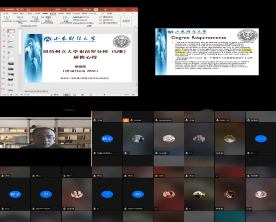 赵明亮老师通过腾讯会议(会议号: 970764201),在线开放为国际经贸及相关学院师生进行了一场题为“纽约州立大学布法罗分校研修心得”的英文学术报告。