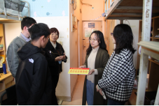 崔东峰一行和党员代表深入研究生各宿舍,检查卫生及用电安全情况,随后为党员宿舍挂上印有“宿舍服务岗”字样的服务卡,提醒他们时刻牢记自己的党员身份,主动了解同学们的思想动态和生活困难,多关注一下、多问一声、多伸把手、多帮一下,努力帮助全体同学营造安全、整洁、舒适的宿舍环境。